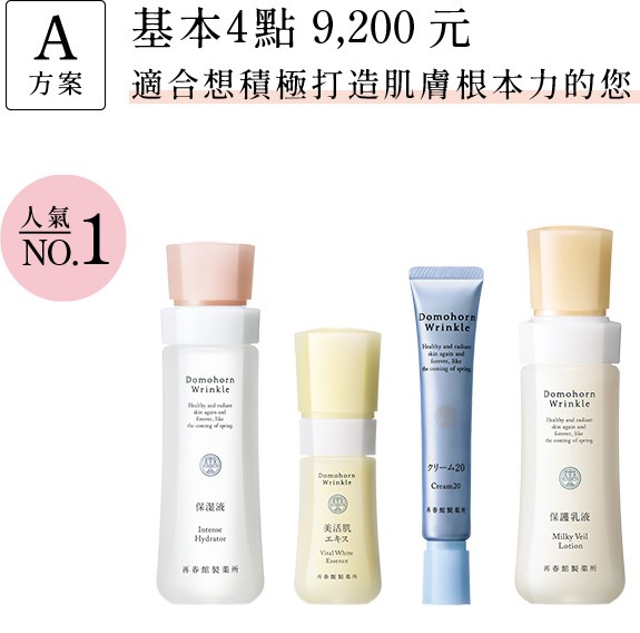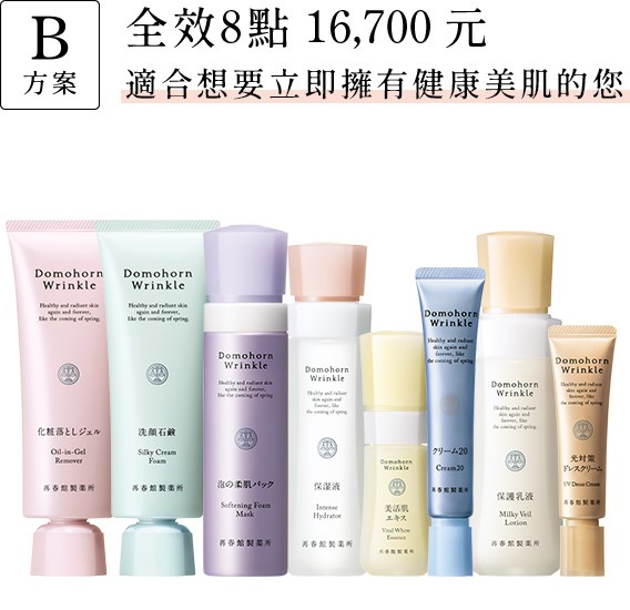 保濕液8mL + 美活肌精華3mL + 乳霜20 3g + 保護乳液5mL + 光對策美肌修護霜1g