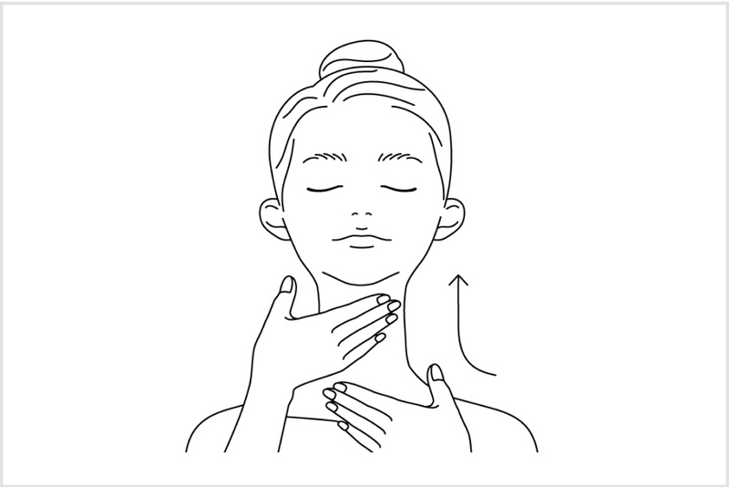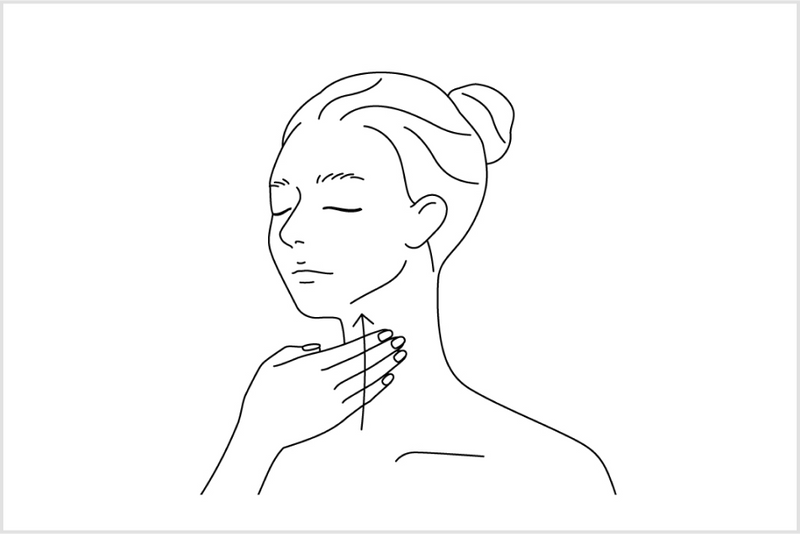 由頸部的前方開始,從鎖骨上方往下巴方向塗抹按摩。