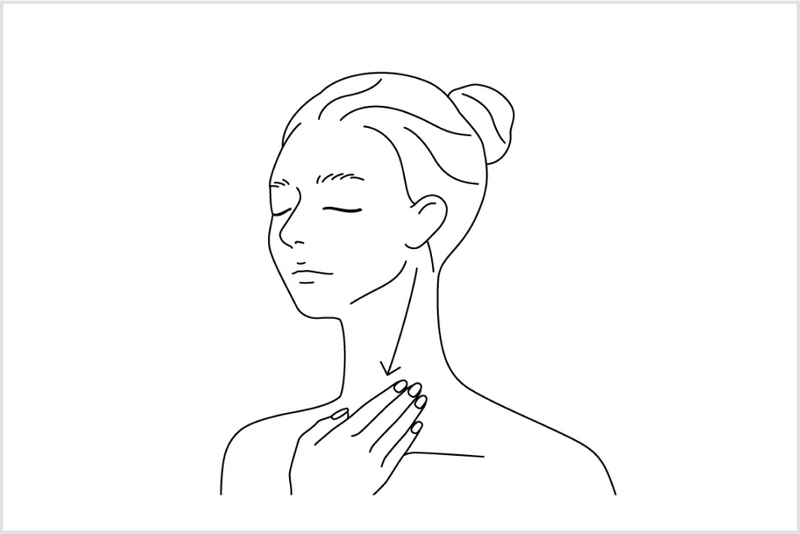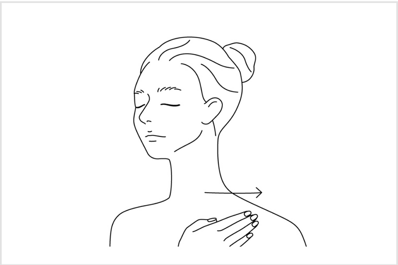 從鎖骨開始,輕柔地將手指沿著胸口滑向腋下,帶來放鬆的感覺。